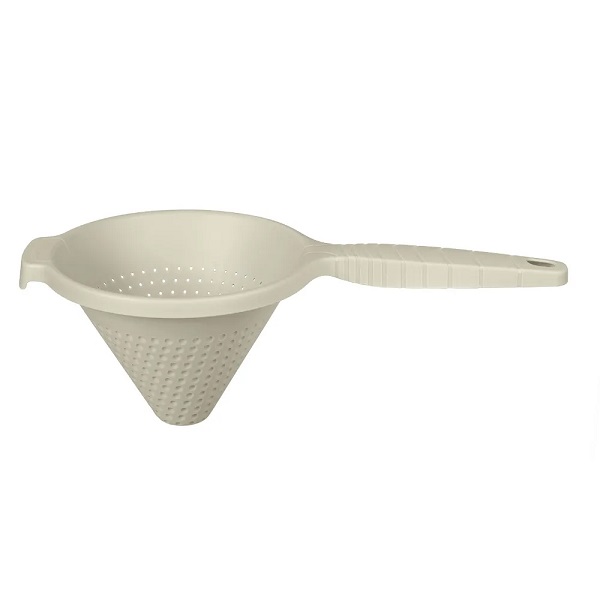 Предназначен не только для просеивания, процеживания или посыпки выпечки, но и может использоваться в качестве воронки. На стенках сита множество отверстий особой формы, через них жидкость стекает по стенкам изделия, собираясь в струю снизу, дополнительная воронка не нужна.