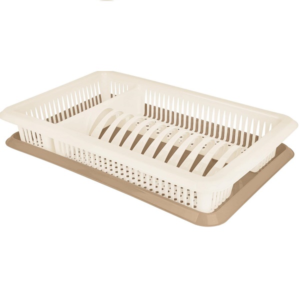 Сушилка для посуды с поддоном – удобный аксессуар, который позволяет сушить и хранить посуду на кухне. Сушилка снабжена двумя секциями: для тарелок и столовых приборов – это дает возможность организовать оптимальное хранение и сушку, а также сэкономить свободное пространство. Посуда и приборы высыхают намного быстрее благодаря дизайну с отверстиями. Сушилка имеет поддон для стока воды, за которым просто ухаживать и содержать в чистоте. Легкий, прочный, пищевой пластик прослужит долгие годы и будет безопасен для здоровья. Можно использоваться как в кухонном шкафу, так и выставить на рабочую поверхность.