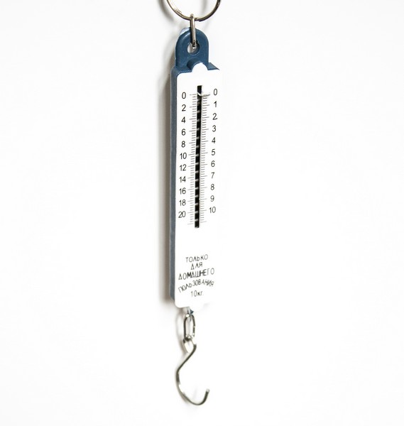 Ручные пружинные весы (безмен) легко умещаются в кармане и имеют предельную нагрузку 10 кг, а цену деления 200 г. Внутри корпуса весов, закрытого планкой с прорезью и шкалой, находится калиброванная пружина и тяга. На конце тяги закреплён крючок, на который подвешивается груз.