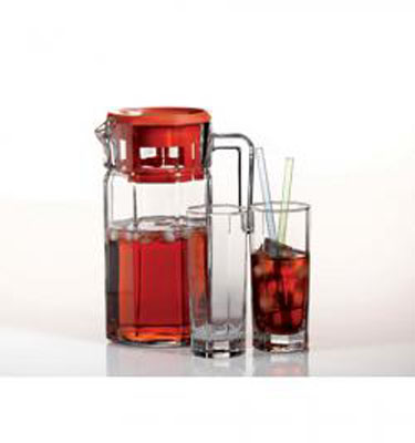 Набор KOSEM кувшин V=2,6л h=240мм + 6 стаканов h=150мм V=200мл - из прозр. стекла с красной крышкой
