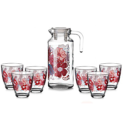 Набор Кувшин V=1300 мл + 6 стаканов V=285 мл, рисунок ДРИМ РЭД - красные цветы
