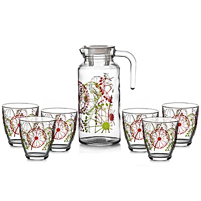 Набор Кувшин V=1300 мл + 6 стаканов V=285 мл, рисунок ФАЗЕНДА - одуванчики красного и зеленого цвета