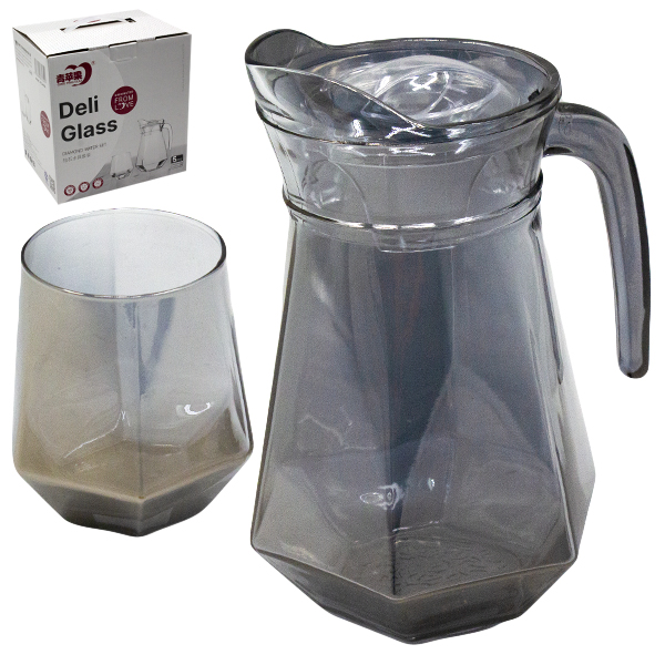 Кувшин с крышкой 1,1л + стаканы 4шт 300мл (стекло)