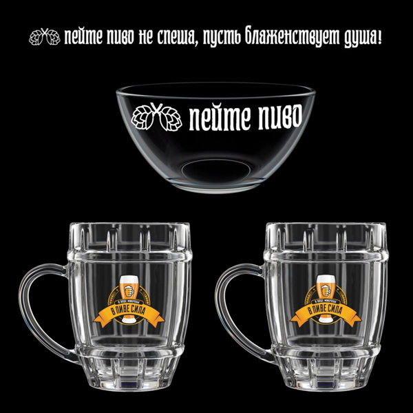Подарочный набор из двух пивных кружек 500 мл и салатника 700мл 1212-Д "В пиве-сила"
