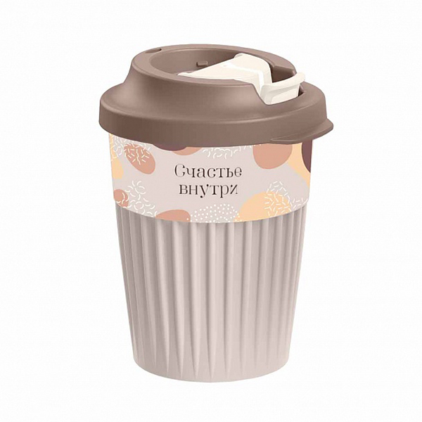 Стакан для горяч. напитков с клапаном и декором 350мл "Счастье" (св.бежевый)(то)