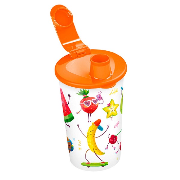 Стакан с клапаном и декором "ФРУКТОВАЯ ВЕЧЕРИНКА" 400мл (Оранжевый)(то)