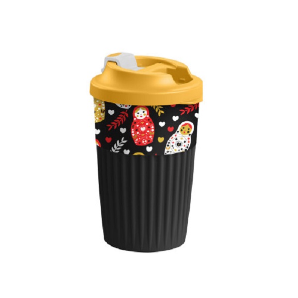 Стакан для горяч. напитков с клапаном и декором 450мл "МАТРЕШКИ" (черный)(то)