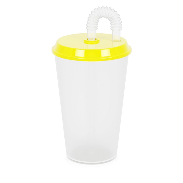 Стакан 0,5л (с крышкой и трубочкой)(желтый) (то)