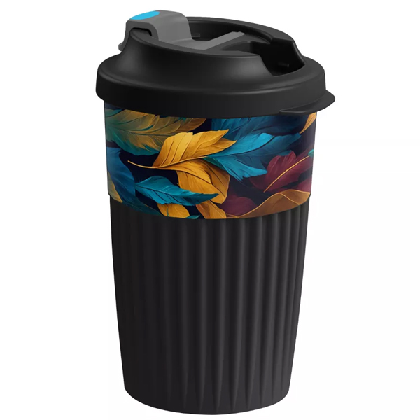 Стакан для горяч. напитков с клапаном и декором 450мл "ЛИСТЬЯ" (черный)(то)