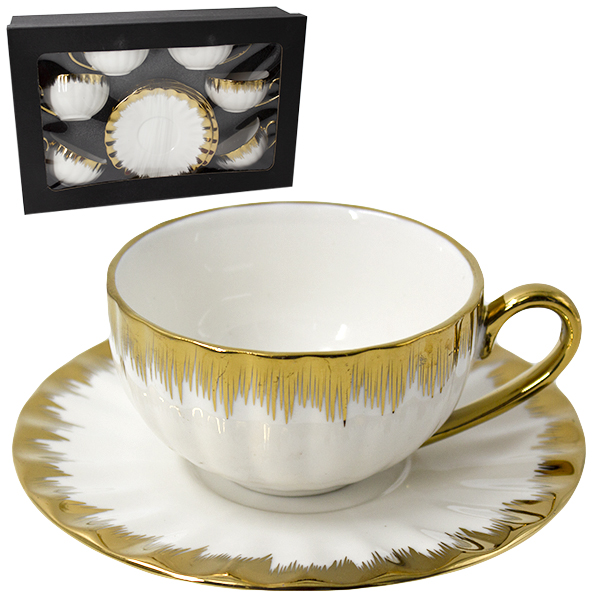 Набор чайный керамический на 6 персон (чашки 200мл с блюдцами) рваные коробки