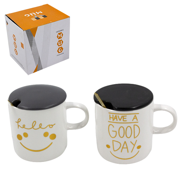 Кружка 350мл, с керамической крышкой и ложкой из нерж(мятые коробки)