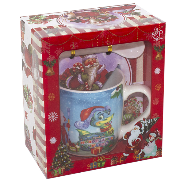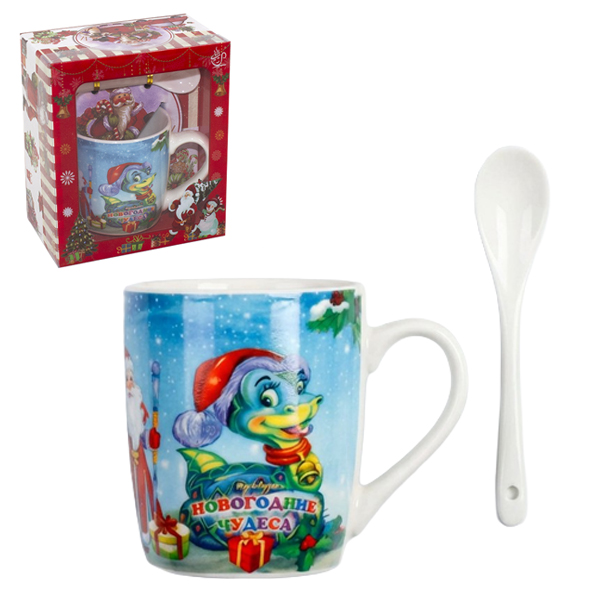 Кружка 210мл НГ с ложкой в подарочной коробке ЗМЕЯ
