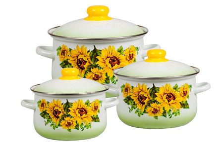 Кастрюля 5л. цилиндр. белый ПОДСОЛНУХИ