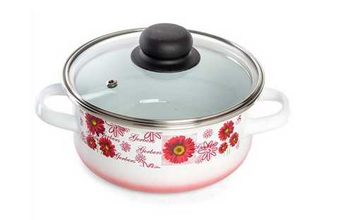 Кастрюля 1,5л. цил. Красные герберы низк. стекл. крышка