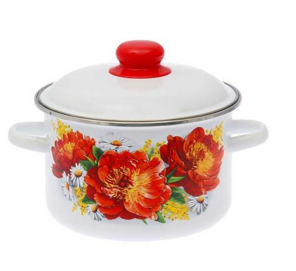 Кастрюля цил. "ПИОНЫ" 5,5л бел. (3)
