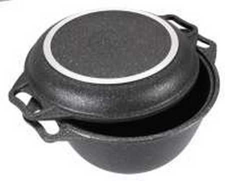Казан с крышкой-сковородой 4л, АП (темный мрамор)
