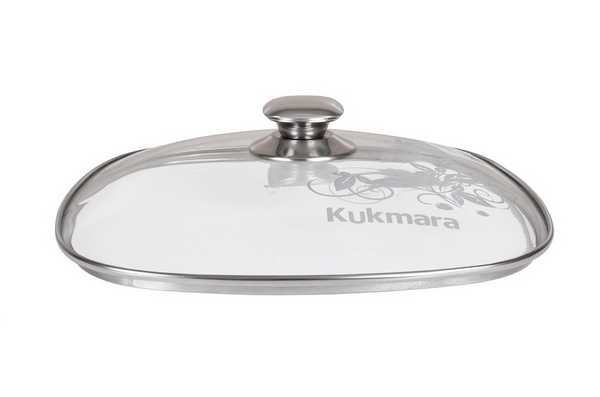 Крышка стеклянная квадратная 260мм с ободом и ручкой из нержавеющей стали деколь серая