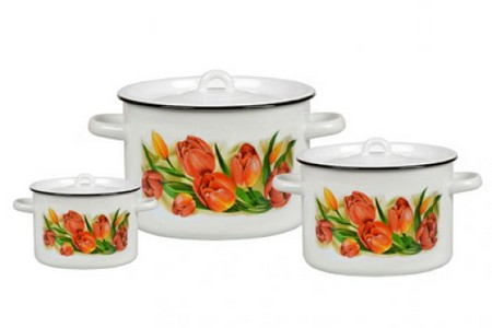 Набор №33 кастрюль цилиндр. ТЮЛЬПАНЫ 1,5/2,9/3,9л