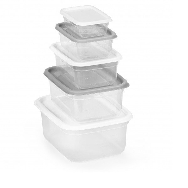 Практичные пищевые контейнеры для хранения и транспортировки салатов, вторых блюд, закусок, бакалеи и мелочей. Удобная прямоугольная форма с закруглёнными углами, крышки с язычками для лёгкого открывания. Благодаря системе «матрёшка» контейнеры и крышки компактно складываются, экономя пространство.