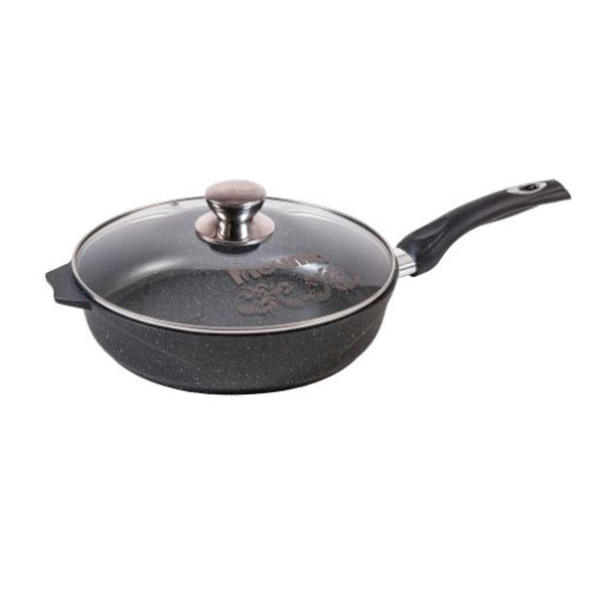 Сковорода 24см АП Гранит с несъемной ручкой и стеклянной крышкой арт.С24701