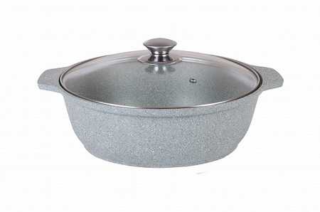 Кастрюля-жаровня 3л со стеклянной крышкой АП (фисташковый мрамор)