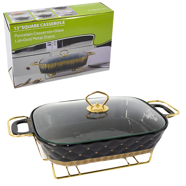 Мармит 32*21*12см (керамическое блюдо со стеклянной крышкой + подставка мет)