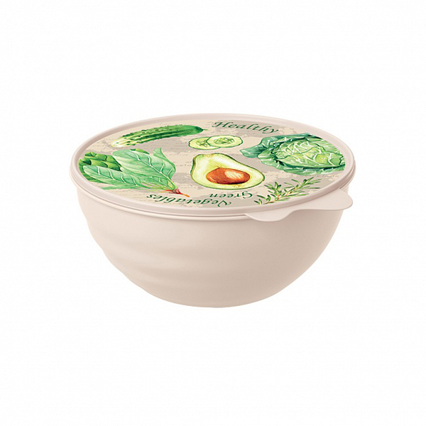 Миска с крышкой с декором WAVE 0,85л (бежевый)(то)
