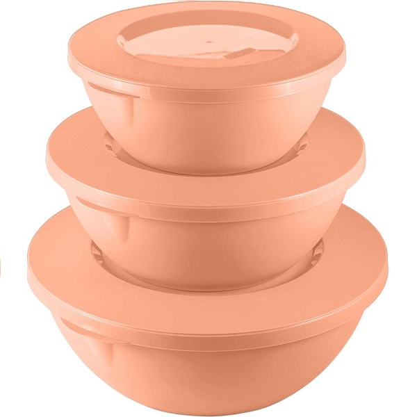 Набор мисок HELSINKI с крышками 3 шт (3л, 2л, 1л) персиковая карамель (то)