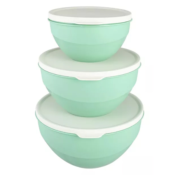 Набор мисок изготовлен из безопасного пищевого пластика, не содержащего сторонних химических запахов и примесей. Крышка плотно прилегает и позволяет дольше сохранять продукты свежими и предотвращает их заветривание. Благодаря текстурной поверхности, крышка и миска не будут выскальзывать из влажных рук в процессе приготовления блюд. Приятный пастельный цвет набора удачно впишется в интерьер современной кухни. Миски можно использовать для разогрева в СВЧ и заморозки в морозильной камере. Изделия просто мыть, как в горячей, так и в холодной воде. Возможно мытье в посудомоечной машине.