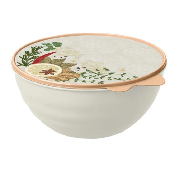 Миска с крышкой с декором WAVE 0,85л (св.серый)(то)