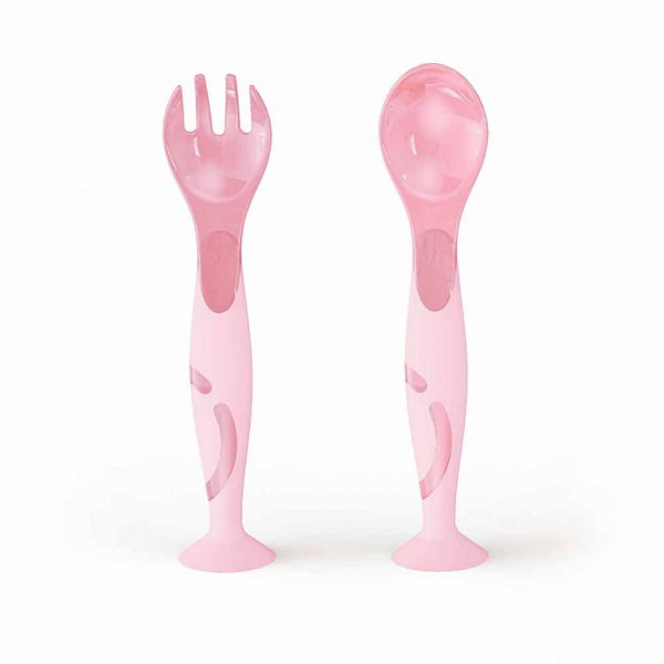 Набор: ложечка и вилочка на присосе (розовый)(то)