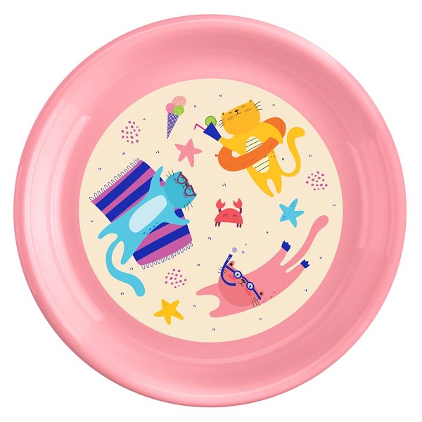 Проские тарелки "Пластишка" из коллекции "Коты на пляже" стильные, легкие и прочные. Фактурная шагреневая полоска на наружной поверхности бортика обеспечивает нескользящий эффект. Бортики тарелки загнуты и удобны для того, что бы держать тарелку в руках. Декоры нанесены с помощью технологии вплавления этикетки и имеют двойной ламинирующий слой для дополнительной защиты. Изготавливаются из 100% перерабатываемого прочного безопасного пищевого полипропилена, не содержат бисфенол А. Объем 400мл.
