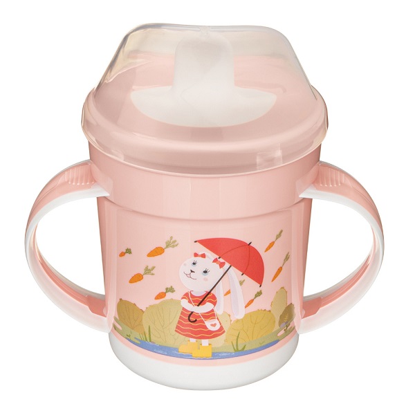 Поильник с ручками, декором и защитной крышкой 320мл (Св.розовый)(то)