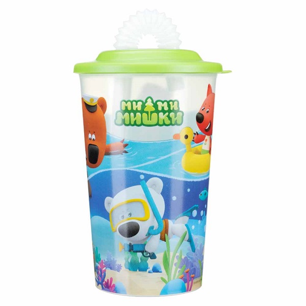 Стакан с трубочкой и декором МИ-МИ-МИШКИ 400мл (Зеленый)(то)