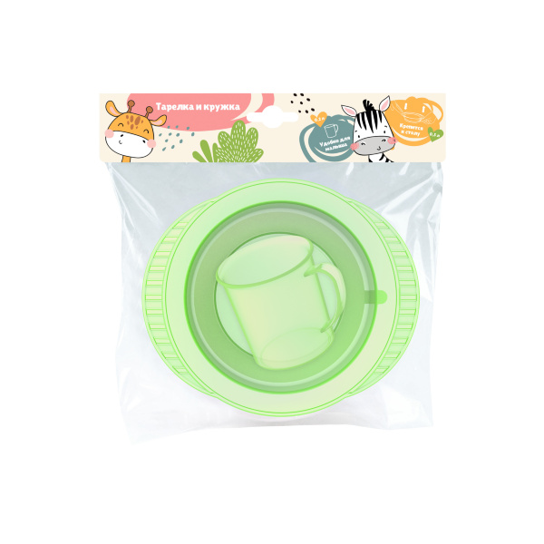 Набор детской посуды (кружка 0,2л и тарелка на присосе) Giraffix (то)