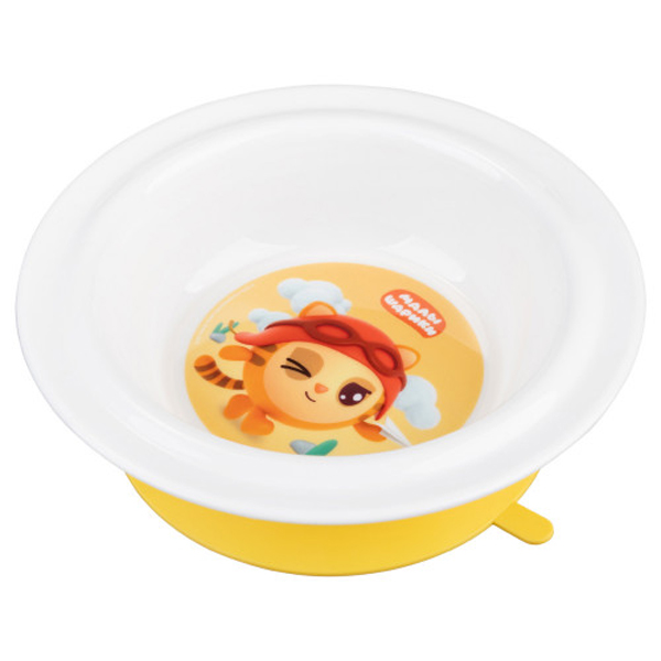 Тарелка детская глубокая на присосе с декором "МАЛЫШАРИКИ" (желтый)(то)
