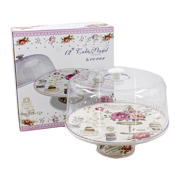 Тортовница на ножке керамическая 30см, с пластиковой (PP) крышкой