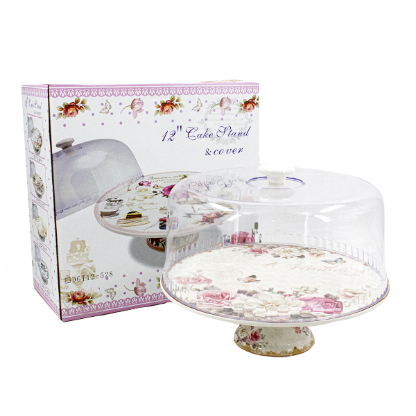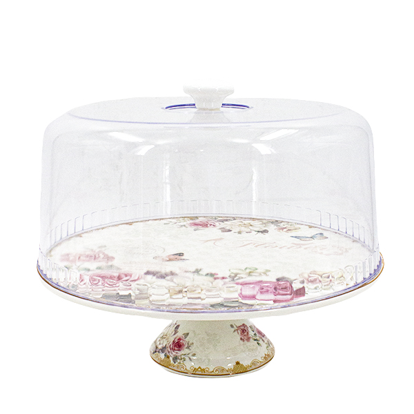 Тортовница на ножке керамическая 30см, с пластиковой (PP) крышкой