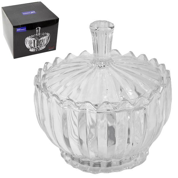 Сахарница стеклянная Ø-15см h-10см, с крышкой