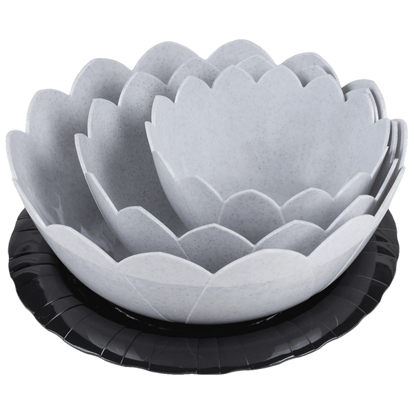 Представляем вашему вниманию набор салатников, вдохновленный природой и напоминающий цветок из камня. Этот набор станет практичным помощником в арсенале посуды при сервировке и подаче блюд в едином стиле. Заостренные края салатников выполнены в форме листьев базилика и напоминают корону. Контуры рисунка различимы внешне и на ощупь. По истине данный набор салатников можно назвать королем стола, ведь само название "базилик" происходит от греческого слова βασιλικόν (basilikón), что означает "царский" или "королевский". В новом оттенке шерл салатники и вовсе выглядят как стекляные во многом благодаря своей глянцевой поверхности внутри и снаружи.