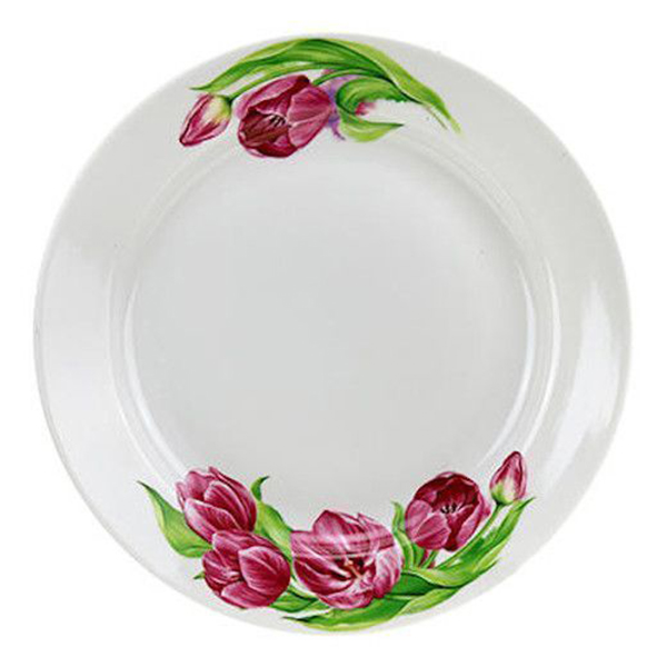 Тарелка мелкая диам. 240 мм Гладкий край Розовые тюльпаны (фарфор)
