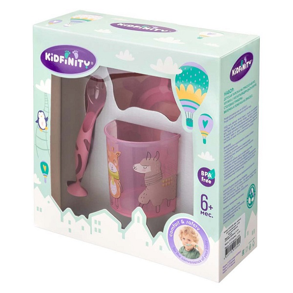 Набор детской посуды от Kidfinity® прекрасный подарок на любой случай. Тарелочка для вторых блюд благодаря присосу не скользит по поверхности стола. Широкие края с прорезиненными вставками помогут малышу уверенно держать тарелку в руках. Кружка благодаря нескользящему дну устойчива на столе, что уменьшает риск ее опрокидывания. Кружка имеет небольшой вес и удобную ручку, это позволяет малышу легко держать ее самостоятельно. Через прозрачные стенки хорошо виден уровень жидкости. Декор нанесен с помощью технологии IML, поэтому изображение не сотрется и не отклеится. Ложечка и вилочка с безопасными закругленными зубчиками облегчат процесс кормления малыша и обучения его самостоятельному питанию. Эргономичные ручки столовых приборов имеют специальные нескользящие вставки. Присосы позволят зафиксировать приборы на поверхности стола, избежав загрязнений.