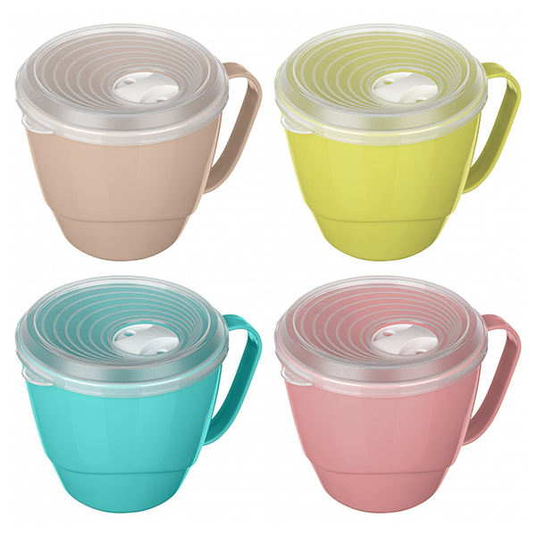 Компактный и в то же время вместительный контейнер-кружка подходит для супов, бульонов и напитков. Крышка позволяет сохранять содержимое горячим. Благодаря клапану можно разогревать содержимое в микроволновой печи, не снимая крышки (при открытом клапане).
