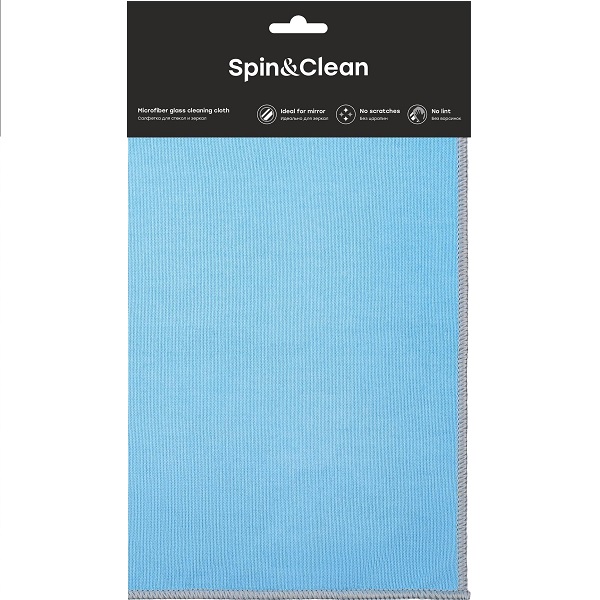 Салфетка Spin&Clean для стекол и зеркал изготовлена из микрофибры премиального качества (плотность 250гр/м2)- прекрасно впитывает влагу с поверхности зеркал, сантехники, кафельной плитки и стеклянных столов, а так же полирует до блеска за считанные секунды. Идеальна для хрусталя, фарфора, экранов телевизоров и мониторов, микроволновых печей, варочных панелей из стеклокерамики, оптической техники. Салфетка Spin&Clean отлично работает без химических моющих средств, благодаря этому подходит для людей с чувствительной кожей и аллергией.