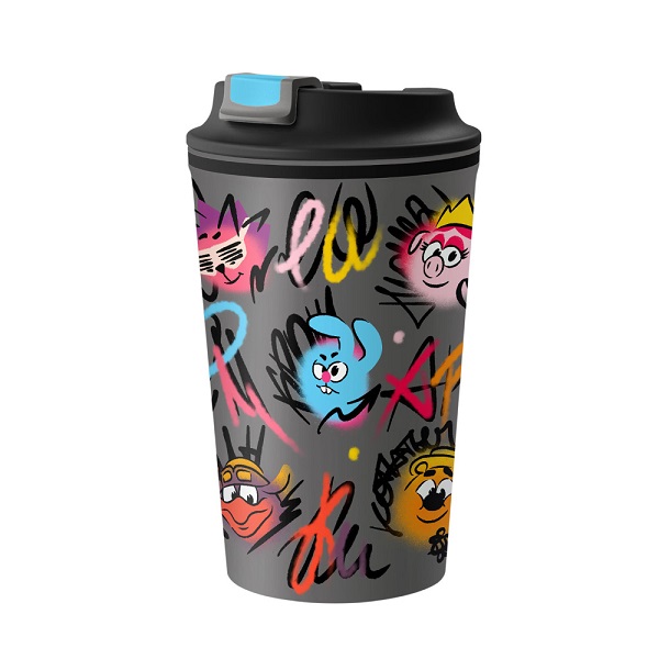 Термостакан 350мл с декором и клапаном "СМЕШАРИКИ" (Серый)(то)