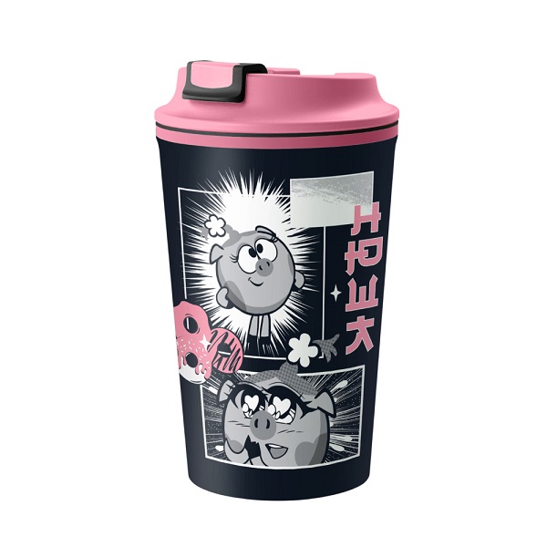 Термостакан 350мл с декором и клапаном "СМЕШАРИКИ" (Черный)(то)