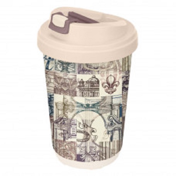 Термостакан 400мл с декором и клапаном "АРХИТЕКТУРА" (бежевый)(то)