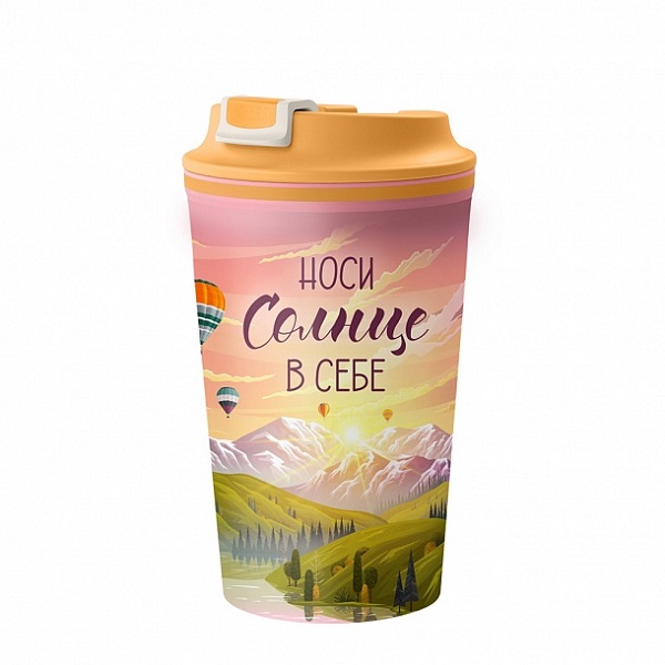 Термостакан 350мл с декором и клапаном "СОЛНЦЕ" (Розовый)(то)