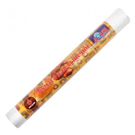 Вощеная, непригорающая. Не прилипает к выпечке и посуде. Исчезает необходимость смазывать противень маслом и мыть его после приготовления пищи. Используется для выпечки в духовом шкафу, в микроволновых печах при температуре до 200 градусов. Размер: 0,28*6 м.