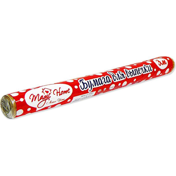 Бумага для выпечки Magic Home предназначена для выпекания кондитерских изделий в духовом шкафу и микроволновых печах, не пригорает и не прилипает к поверхности, к тесту и к форме.